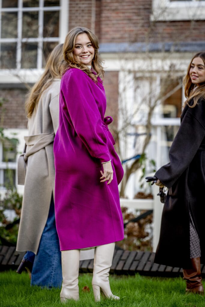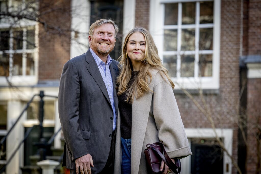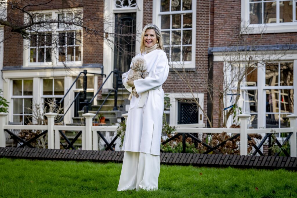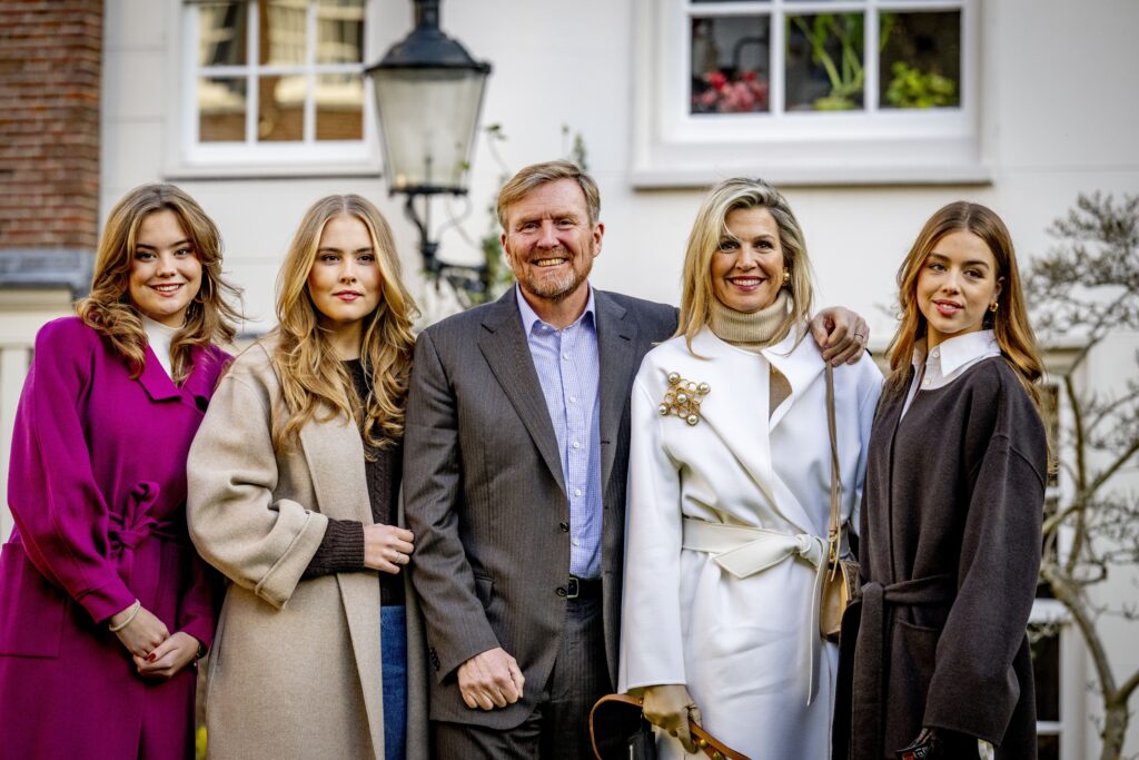De prinsessen Amalia, Alexia en Ariane gingen vrijdag ook samen op de foto. De in een lange beige jas en jeans gestoken Amalia stond daarbij in het midden. “Nu een andere opstelling”, zei ze na enige tijd. “De mannen?” vroeg de koning grappend, waarna hij Mambo oppakte en knuffelde voor het maken van enkele foto’s.