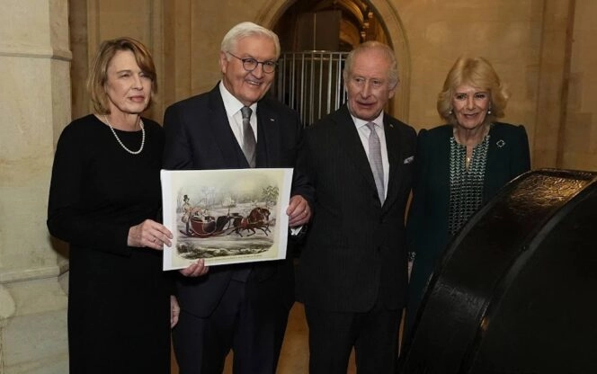Brits koningspaar toont Duitse bondspresident eeuwenoude slee