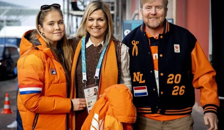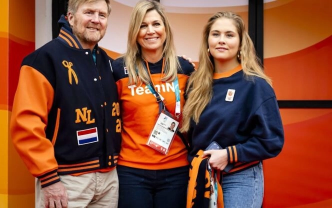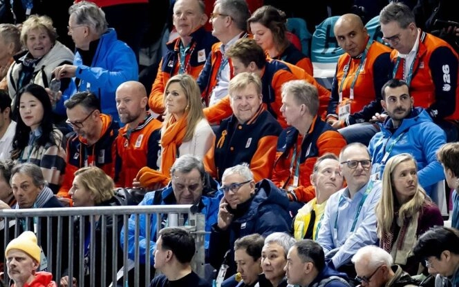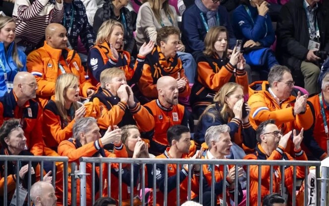 Koningspaar en Amalia moedigen Nederlandse schaatsers aan