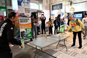 Filip en Mathilde bezoeken met dochter Eléonore olympisch dorp