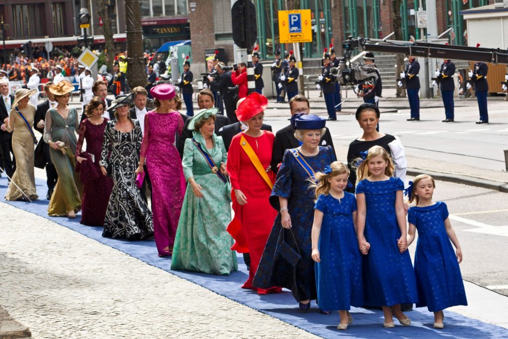 Tijdens haar doop draagt Amalia de doopjurk uit 1880 van Wilhelmina.