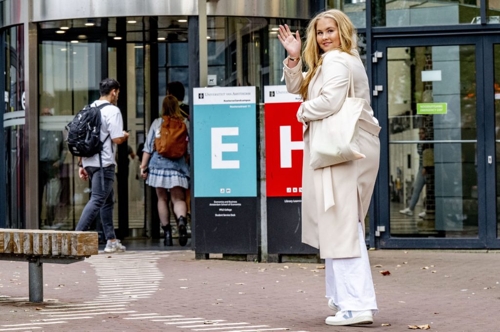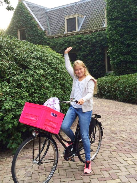 Amalia vertrekt naar het Christelijk Gymnasium Sorghvliet in Den Haag op haar eerste schooldag, augustus 2015. Haar vader maakt de foto.