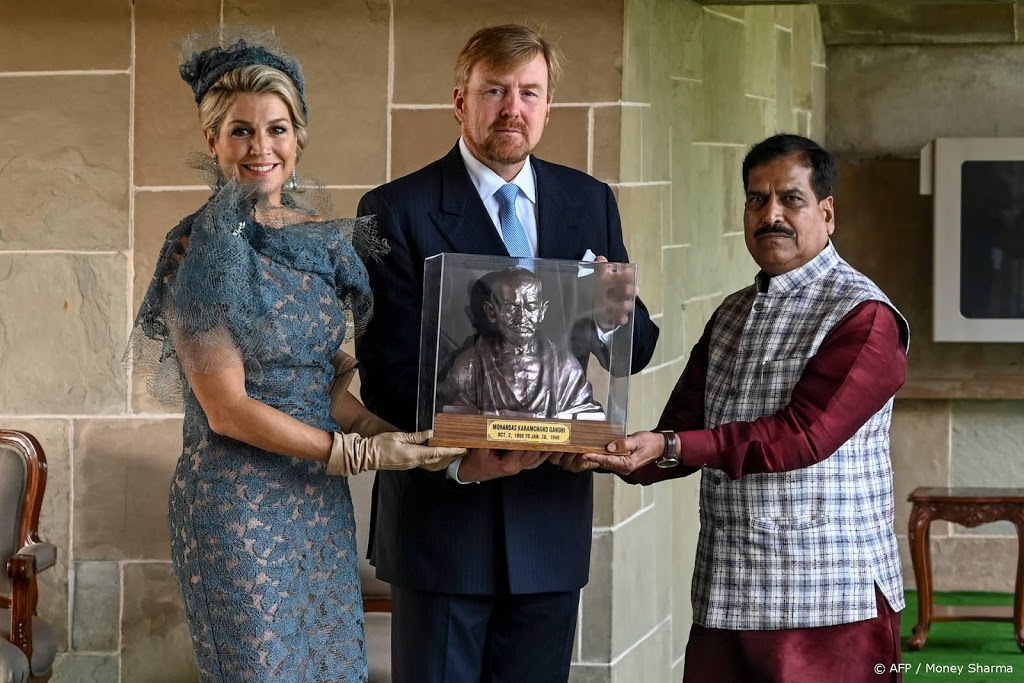 Dat gebeurde bij Raj Ghat, aan de rivier Yamuna, waar Gandhi in 1948 werd gecremeerd. Het koningspaar had de schoenen uitgetrokken, zoals het gebruik en respect voorschrijven. Als aandenken aan het bezoek kregen koning en koningin een aantal boeken over Gandhi en een buste van India’s vrijheidsstrijder.