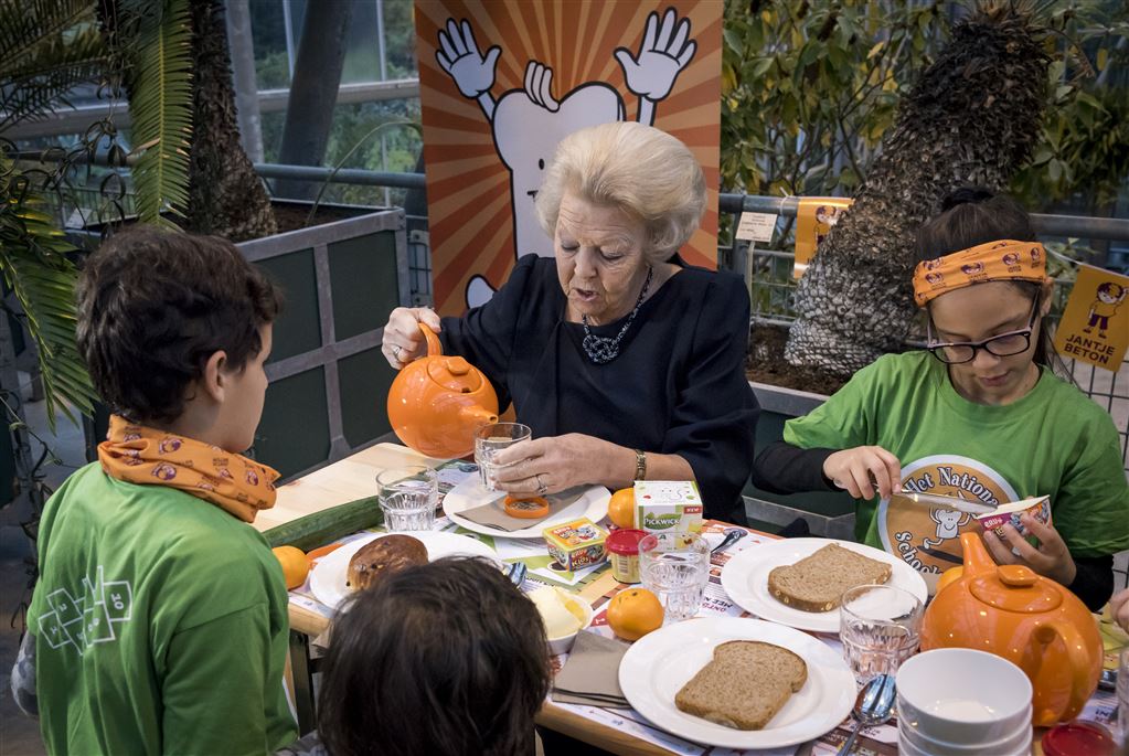 Beatrix woonde in de Hortus Botanicus in Leiden de opening van Het Nationaal Schoolontbijt bij. Met dertig leerlingen van een basisschool in Leiden nuttigde Beatrix een boterhammetje en een kopje thee. In de kas telden de Leidse schoolkinderen samen met Beatrix en culinair presentatrice Miljuschka Witzenhausen af om de ontbijtweek officieel te openen.