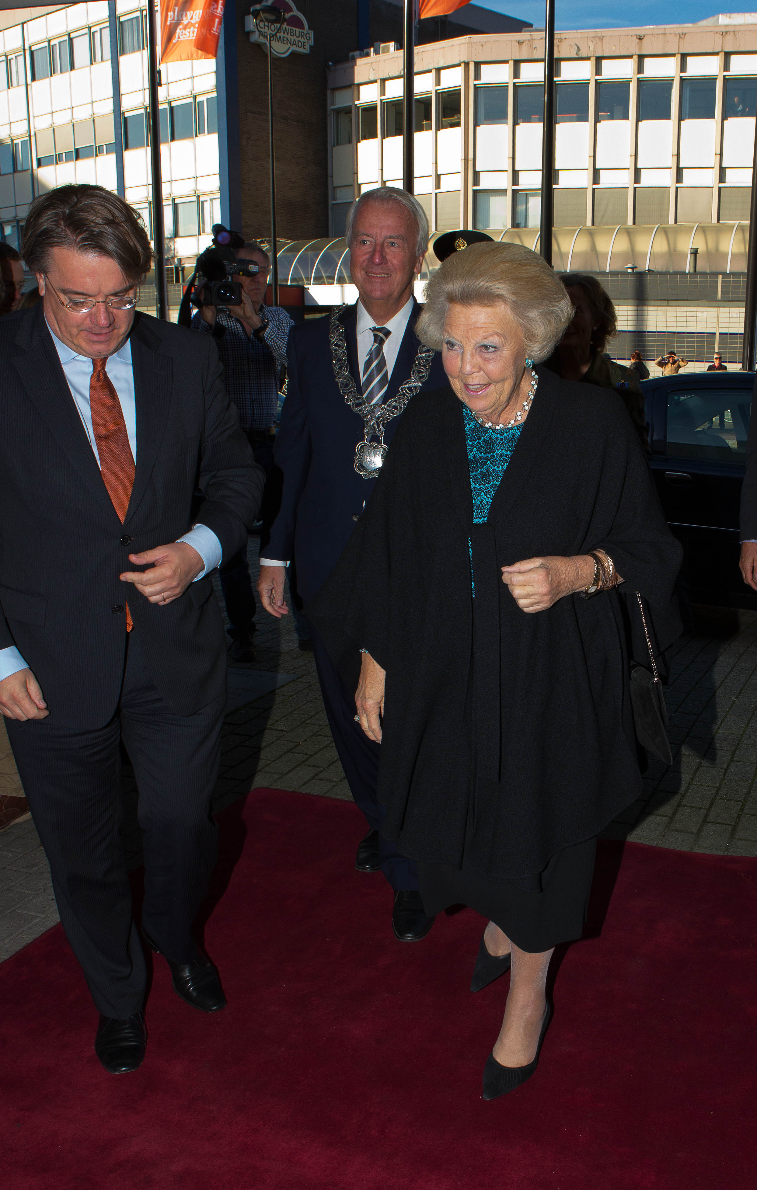 In Tilburg was prinses Beatrix gisteren aanwezig bij het slotakkoord van het Europees Roma- en Sinti-project “Requiem voor Auschwitz’. Met het project wordt sinds 2012 aandacht gevraagd voor de slachtoffers van de Holocaust, waaronder 500.000 Roma en Sinti, en voor de hedendaagse positie van de Roma en Sinti-gemeenschap in Europa. Voor de gelegenheid koos de prinses een zwart ensemble met blauwe details, die ze al enkele malen eerder had gedragen. Haar hoed liet ze ditmaal thuis, maar uiteraard ontbraken haar vaste sieraden (haar verlovingsring en armbandenset van prins Bernhard) niet.