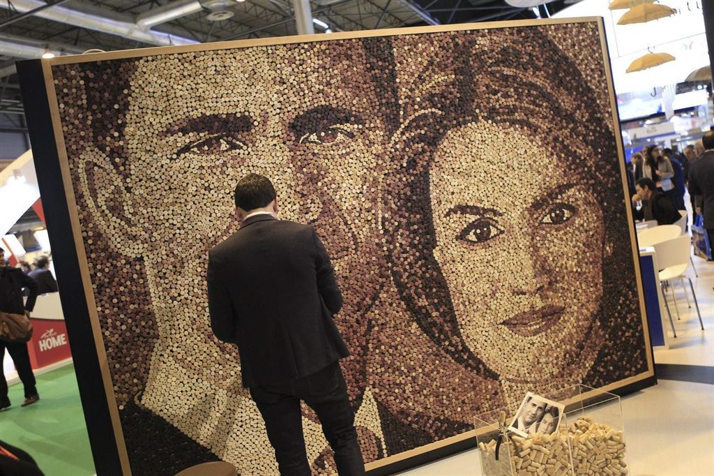 MADRID – Op de internationale toerismebeurs Fitur in Madrid wordt gewerkt aan een collage van koning Felipe en koningin Letizia. In de mozaïek verwerkt de Amerikaanse kunstenaar Scott Gundersen meer dan 30.000 gebruikte kurken.