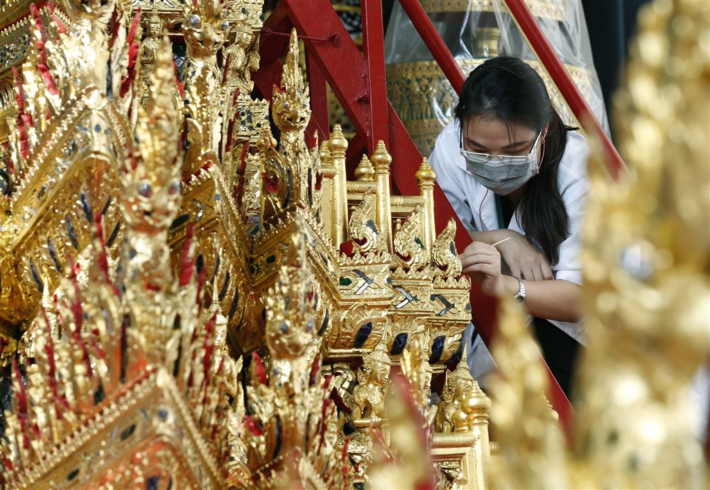 De Thai zijn nog steeds druk in de weer met het opknappen van de triomfwagen die wordt gebruikt bij de uitvaart van koning Bhumibol. De wagen, die later dit jaar wordt gebruikt om het lichaam en de urn van de in oktober overleden koning te vervoeren, wordt opgepoetst in het Nationaal Museum in Bangkok.