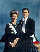 Deze foto is een staatsieportret (1972) van koningin Margrethe II van Denemarken en prins-gemaal Henrik. Margrethe is stemmig gekleed omdat ze nog rouwt om haar vader, die onverwachts is overleden.
