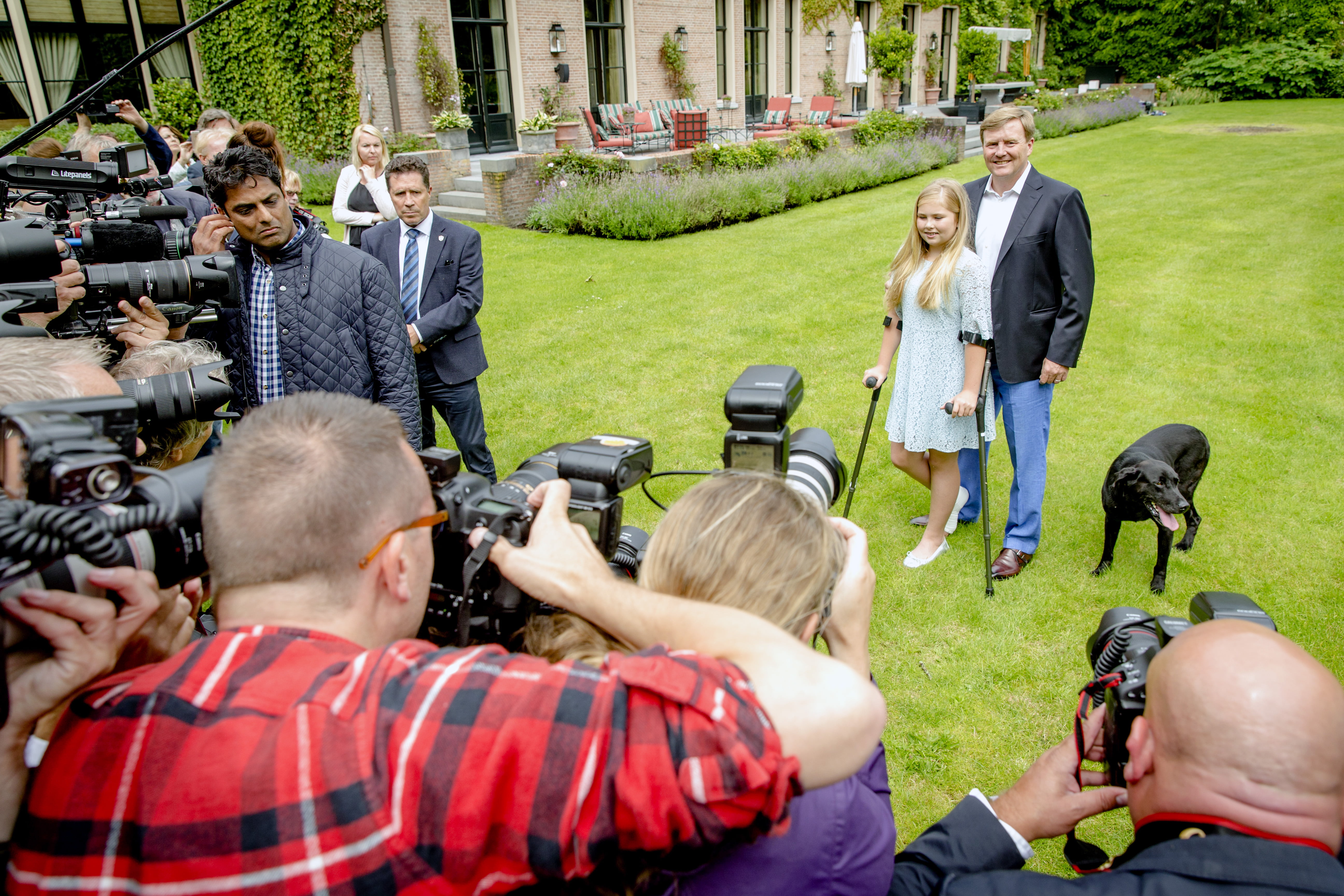 De chaos in de tuin van de Eikenhorst was groot. Fotografen en cameralieden buitelden over elkaar heen en de beveiligers probeerden de planten voor het terras van de ondergang te behoeden. Willem-Alexander was achteraf echter laconiek over de commotie. Zijn dochters vonden het wel amusant. Voor het gezin was er in elk geval genoeg te zien: we hebben ervan genoten stelde de koning met een glimlach. Amalia verscheen op krukken omdat ze donderdagavond laat haar rechterenkel heeft verstuikt.
