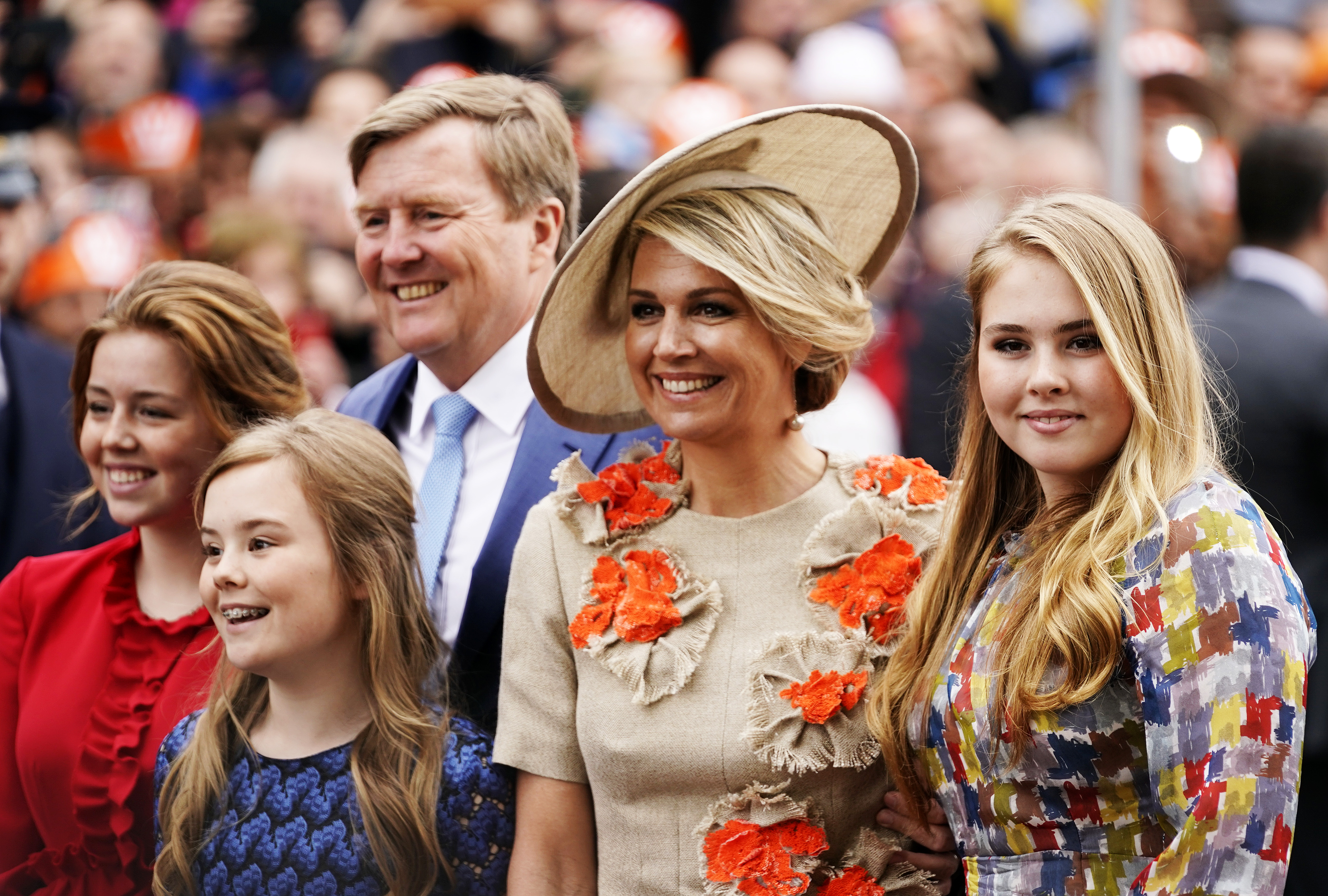 De drie dames volgden, nog meer dan vorig jaar, een eigen plan. Amalia zag ik vaak aan de zijde van haar vader, Alexia zag ik vaker bij haar moeder. Maar ik zag vooral een lief gezin. Ik vond het ontroerend om te zien hoe hecht ze zijn. We zien de vijf twee keer per jaar tijdens de fotosessies, maar dat valt in het niet bij Koningsdag. Twee uur lang heb ik ze kunnen gadeslaan. Ik zag de bemoedigende gebaren, het oogcontact – ‘je doet het goed’ – en de armen om de prinsessen heen om ze even adem te kunnen laten halen. Ga er maar aan staan, drie prachtige dochters! Eigenlijk zou je ze het liefst beschermen tegen alle aandacht, maar ze zijn prinses en dus hebben ze een ander leven dan andere meisjes van die leeftijd.