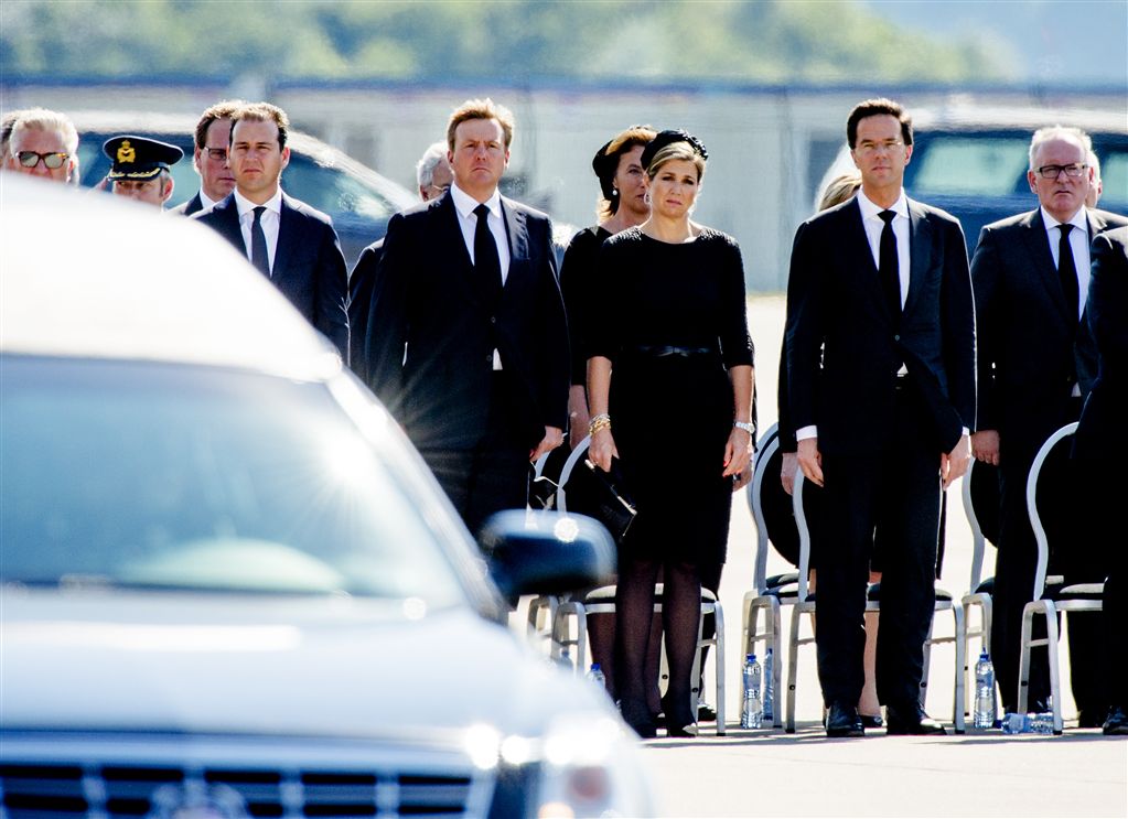 Gedurende de ceremonie pakten koning Willem-Alexander en koningin Máxima regelmatig elkaars hand vast, terwijl ze toekeken hoe militairen de kisten naar de gereedstaande rouwauto’s brachten. Beelden hiervan gingen de hele wereld over. Een foto van het rouwende Nederlandse koningspaar staat donderdag prominent op onder meer de voorpagina van The Times.