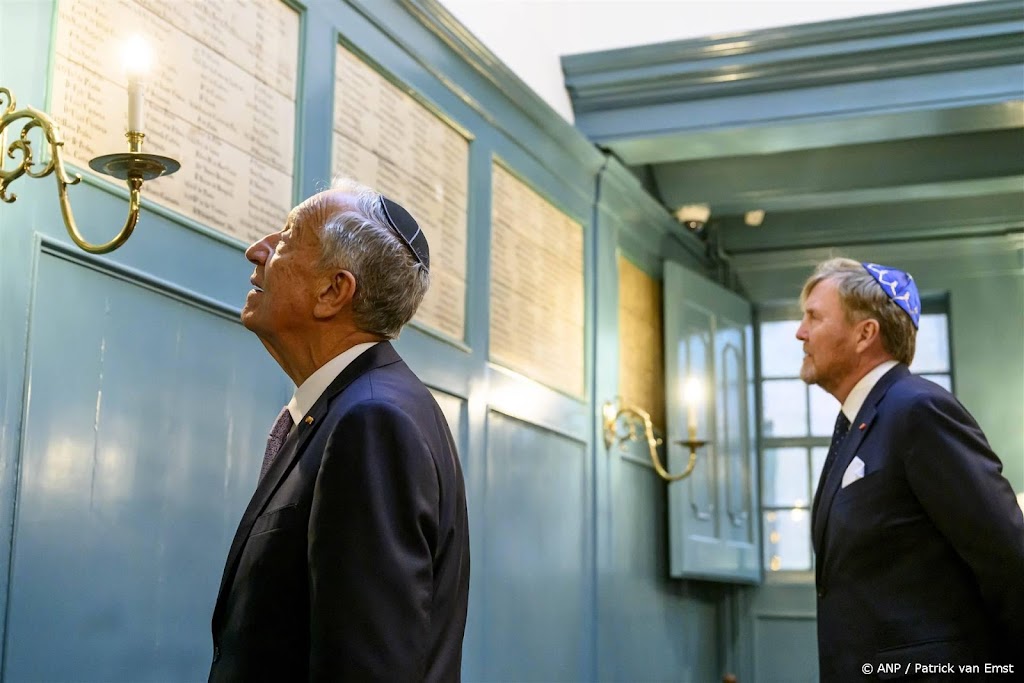 Koning Willem-Alexander en de Portugese president Marcelo Rebelo de Sousa hebben tijdens hun bezoek aan de Portugese synagoge in Amsterdam niet gesproken over de recente ongeregeldheden in de hoofdstad. Dat zei burgemeester Femke Halsema na afloop van het bezoek.