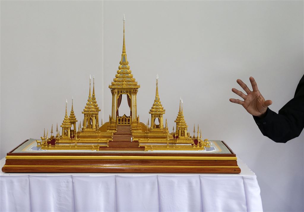 Op het koninklijke veld Sanam Luang, naast het paleis, wordt druk gebouwd aan een speciaal crematorium. Op de maquette is de pracht en praal van het crematorium te zien. De Thai zijn ook nog steeds druk in de weer met het restaureren van de gouden triomfwagen die wordt gebruikt om de urn te vervoeren.