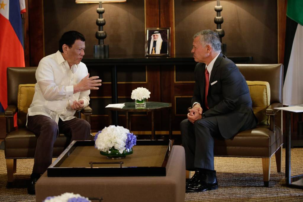 “Als er iets is wat we kunnen doen, als je een tekort hebt in je leger, laat het me weten”, zei Duterte volgens Reuters tijdens een zakelijk forum in Amman tegen Abdullah. De koning had eerder gezegd het “kwaad” dat beide landen trof te betreuren. Tijdens het bezoek van Duterte aan Jordanië haalden de president en de koning de banden aan. Ze spraken onder meer af nauwer te gaan samenwerken op militair gebied. Beide landen vechten onder meer tegen Islamitische Staat (IS).