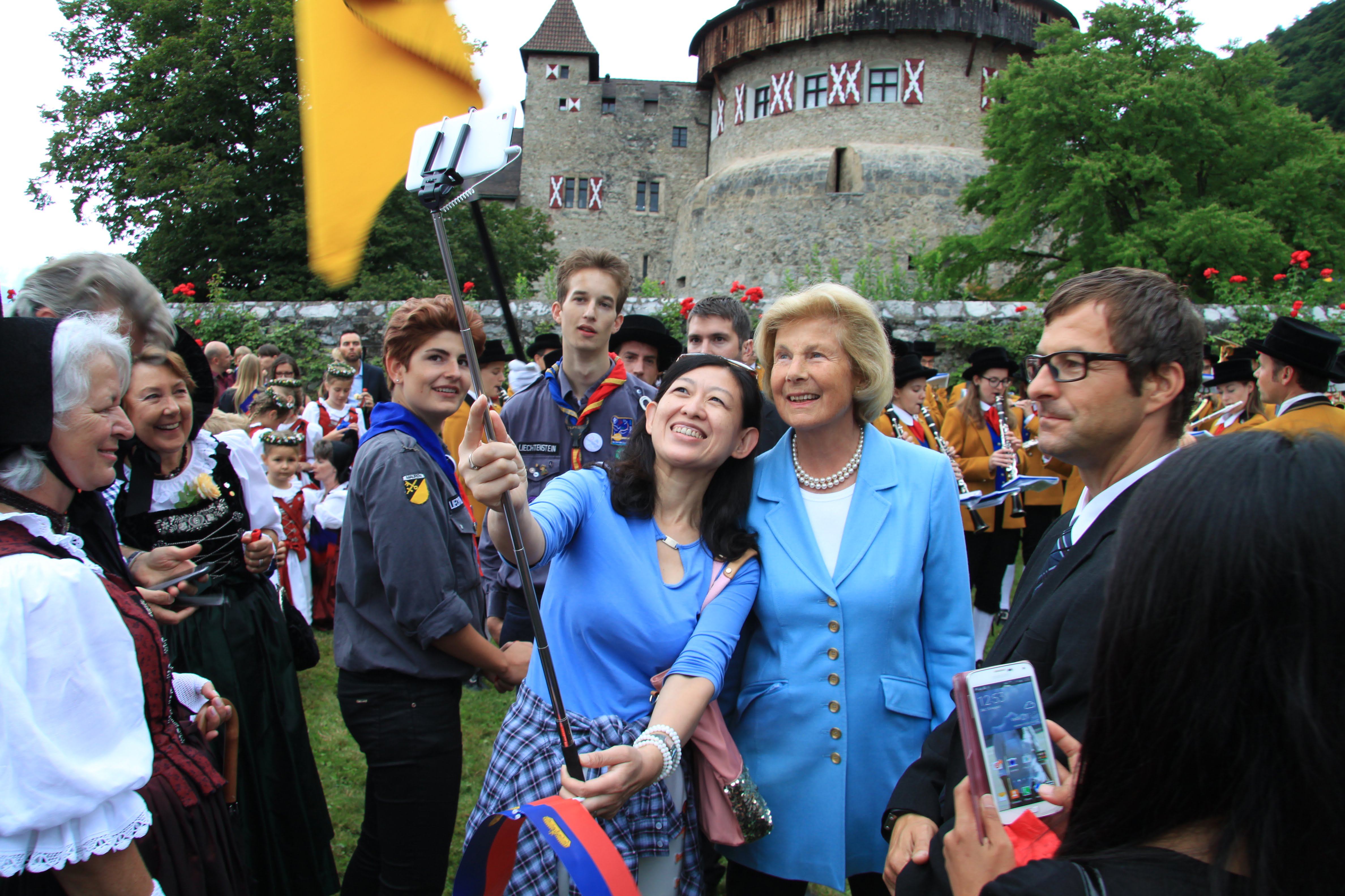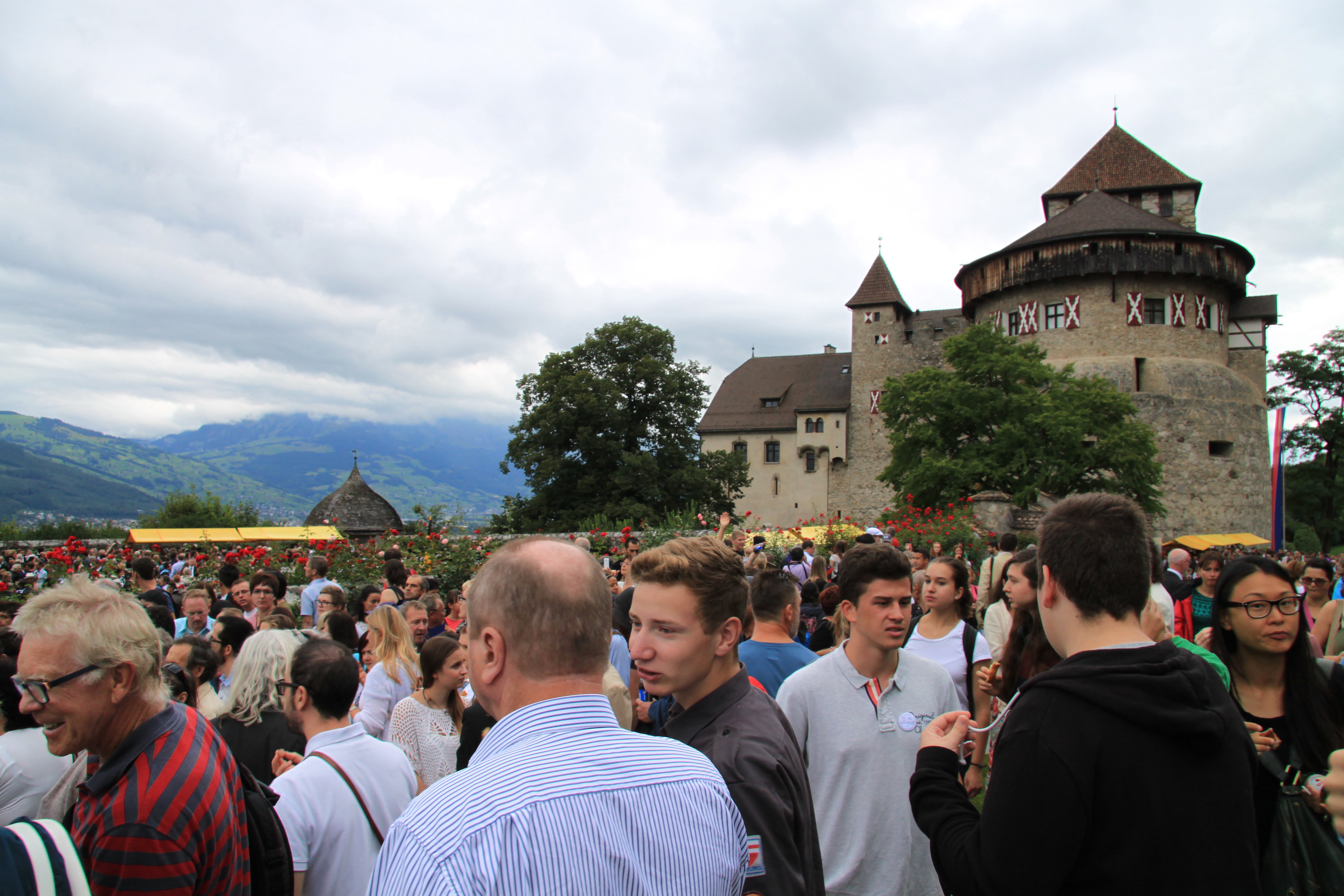 Hans Adam nodigde traditiegetrouw de bevolking uit om een glas te komen drinken in de tuin van Slot Vaduz. Eerder op de dag hield zijn zoon erfprins Alois een toespraak op de grasweide ernaast.
