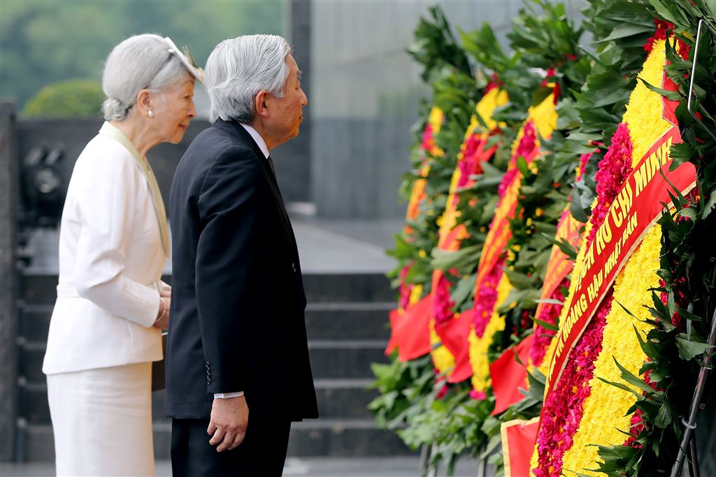 Akihito en Michiko werden bij het presidentieel paleis in Hanoi ontvangen door president Tran Dai Quang. Na de welkomstceremonie legde het keizerlijk paar bloemen bij het mausoleum van de voormalig communistische leider Ho Chi Minh, dat in het centrum van de Vietnamese hoofdstad staat.