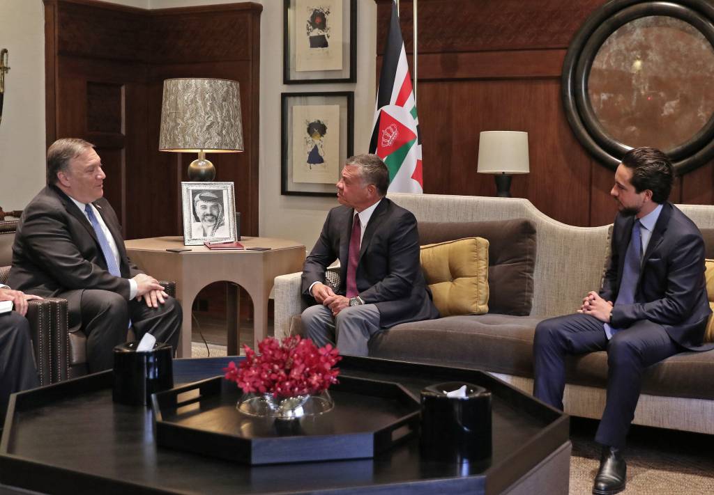 De Amerikaanse minister van Buitenlandse Zaken Mike Pompeo heeft maandag een bezoek gebracht aan de Jordaanse koning Abdullah. In het bijzijn van Abdullah’s 23-jarige zoon kroonprins Hoessein werden regionale ontwikkelingen besproken.