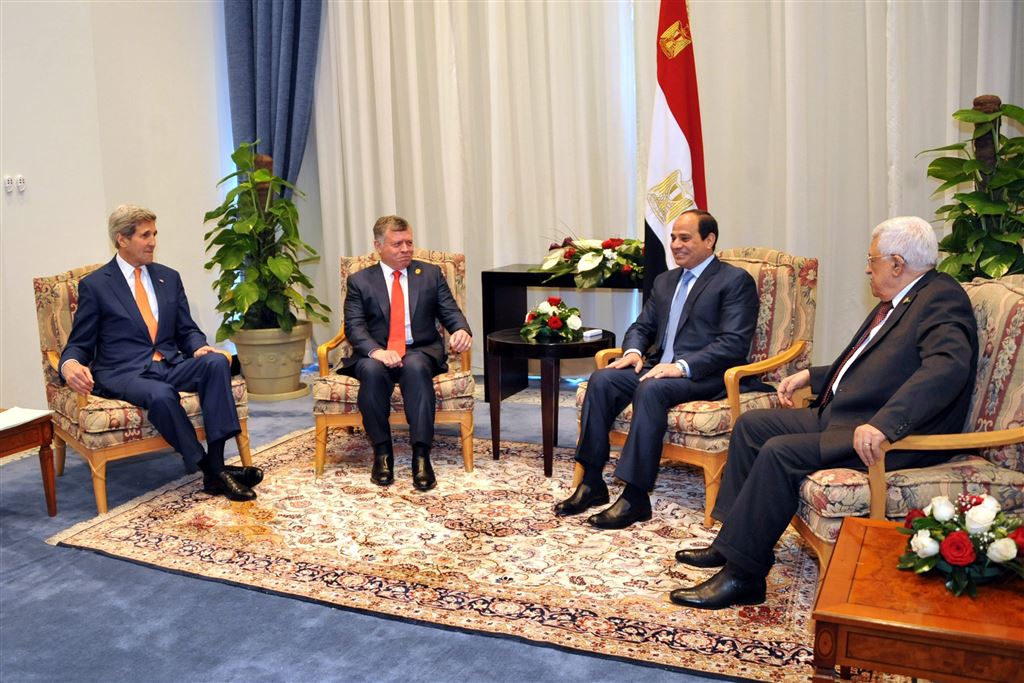 SHARM EL-SHEIKH – De Jordaanse koning Abdullah II heeft vrijdag bijgepraat met John Kerry, de Amerikaanse minister van Buitenlandse Zaken. Bij het gesprek, dat in de Egyptische badplaats Sharm El-Sheikh plaatsvond, waren de Egyptische president Abdel Fattah al-Sisi en de Palestijnse president Mahmoud Abbas aanwezig.