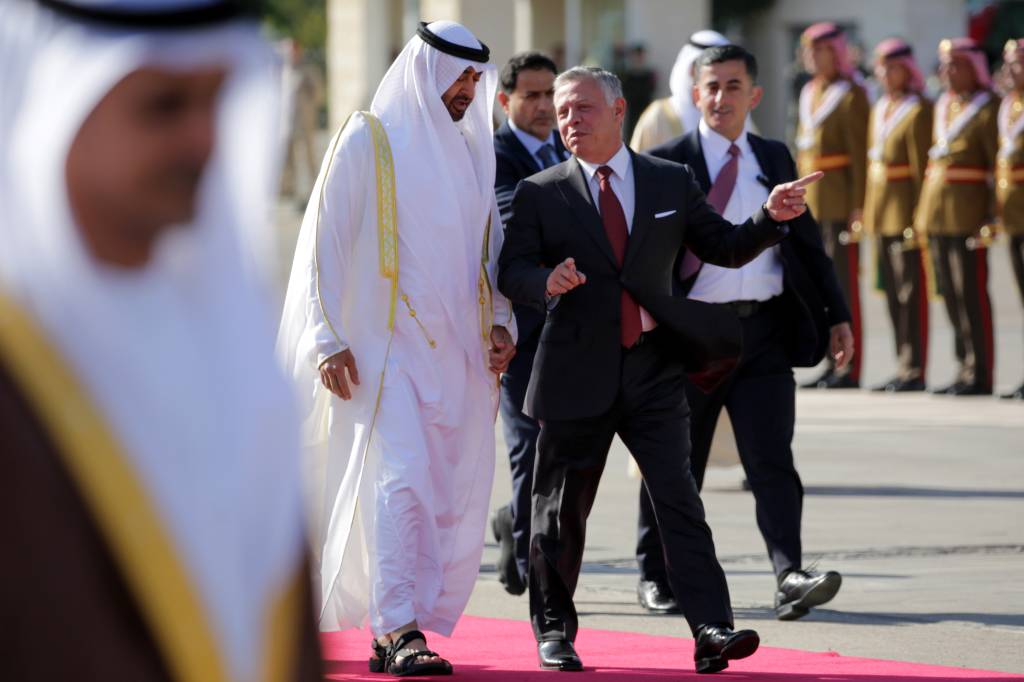Koning Abdullah van Jordanië heeft dinsdag kroonprins Mohammed bin Zayed van Abu Dhabi ontvangen. De Jordaanse vorst ontving zijn gast tijdens een welkomstceremonie, inclusief militaire erewacht, op het militaire vliegveld Marka.