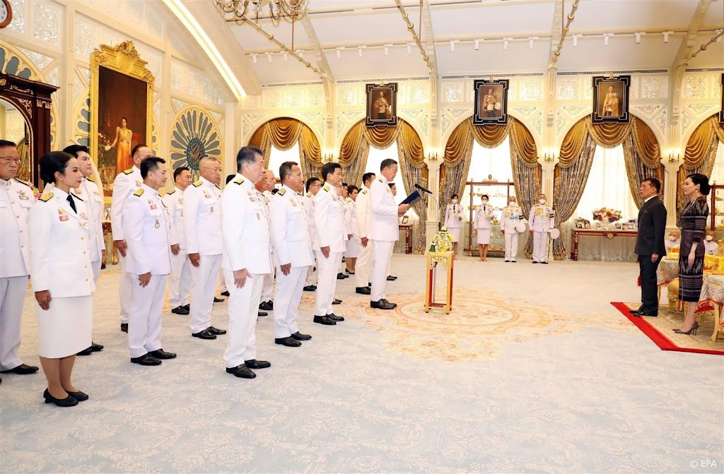 Koning Vajiralongkorn van Thailand heeft dinsdag in het Koninklijk Paleis in Bangkok het nieuwe Thaise kabinet ontvangen. De nieuwe premier Srettha Thavisin en de overige 34 kabinetsleden legden daar de eed af.