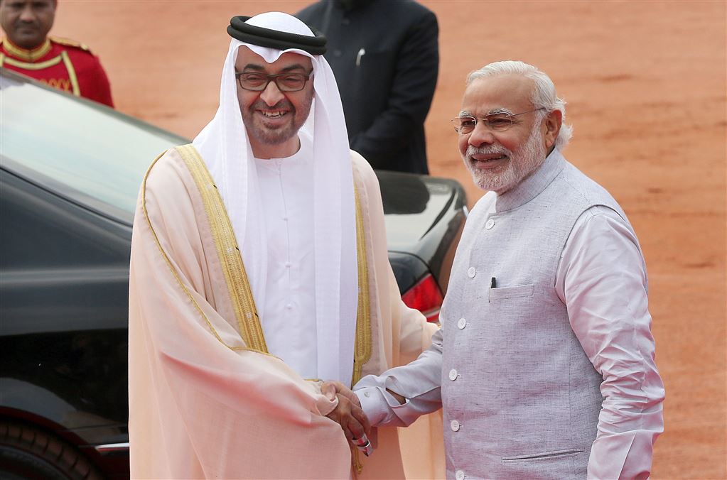 De kroonprins van Abu Dhabi, Mohammed bin Zayed al Nahyan, is in India. De broer van de emir van Abu Dhabi werd donderdag verwelkomd door de Indiase premier Narendra Modi tijdens een ceremoniële ontvangst bij de presidentiële woning in New Delhi.