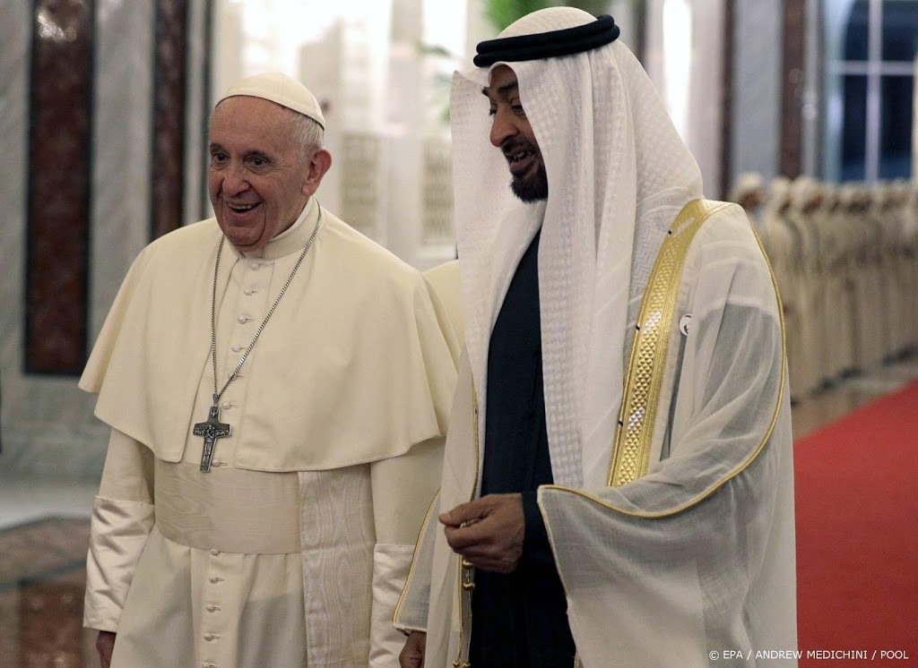 Franciscus is drie dagen in de Verenigde Arabische Emiraten. Hij werd vorig jaar uitgenodigd door kroonprins Mohammed en de kleine katholieke gemeenschap in het Arabische land. Franciscus is ook de eerste paus die het land aandoet.