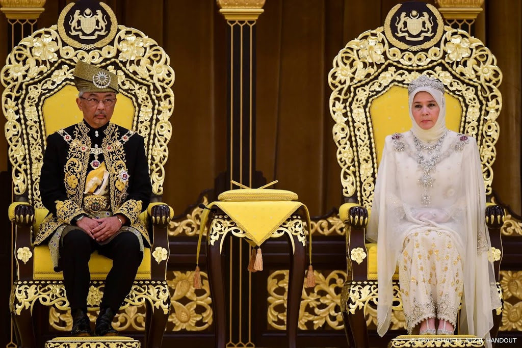 De Maleisische koningin Azizah heeft woensdag persoonlijk de postzegels in ontvangst genomen en aan een kritische blik onderworpen die Pos Malaysia heeft uitgegeven ter gelegenheid van de installatie van de nieuwe Yang di-Pertuan Agong, dinsdag. Azizah staat er zelf ook op afgebeeld, waarbij gebruik is gemaakt van al ruim voor de plechtigheid gemaakte staatsieportretten van het nieuwe koningspaar.