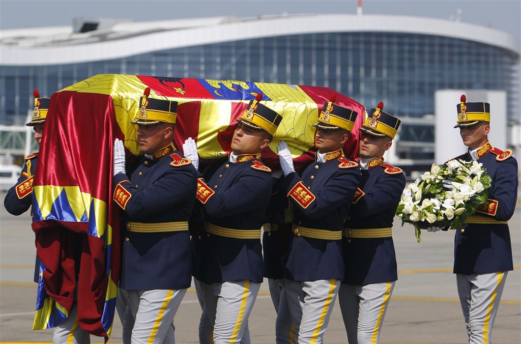 Hij werd ontvangen door kroonprinses Margareta en haar man prins Radu. Woensdag is er de hele dag gelegenheid tot afscheid nemen voor vertegenwoordigers van de Roemeense samenleving, buitenlandse diplomaten en afgevaardigden uit buurland Moldavië. De Roemeense premier Dacian Ciolos wordt woensdagmiddag verwacht.