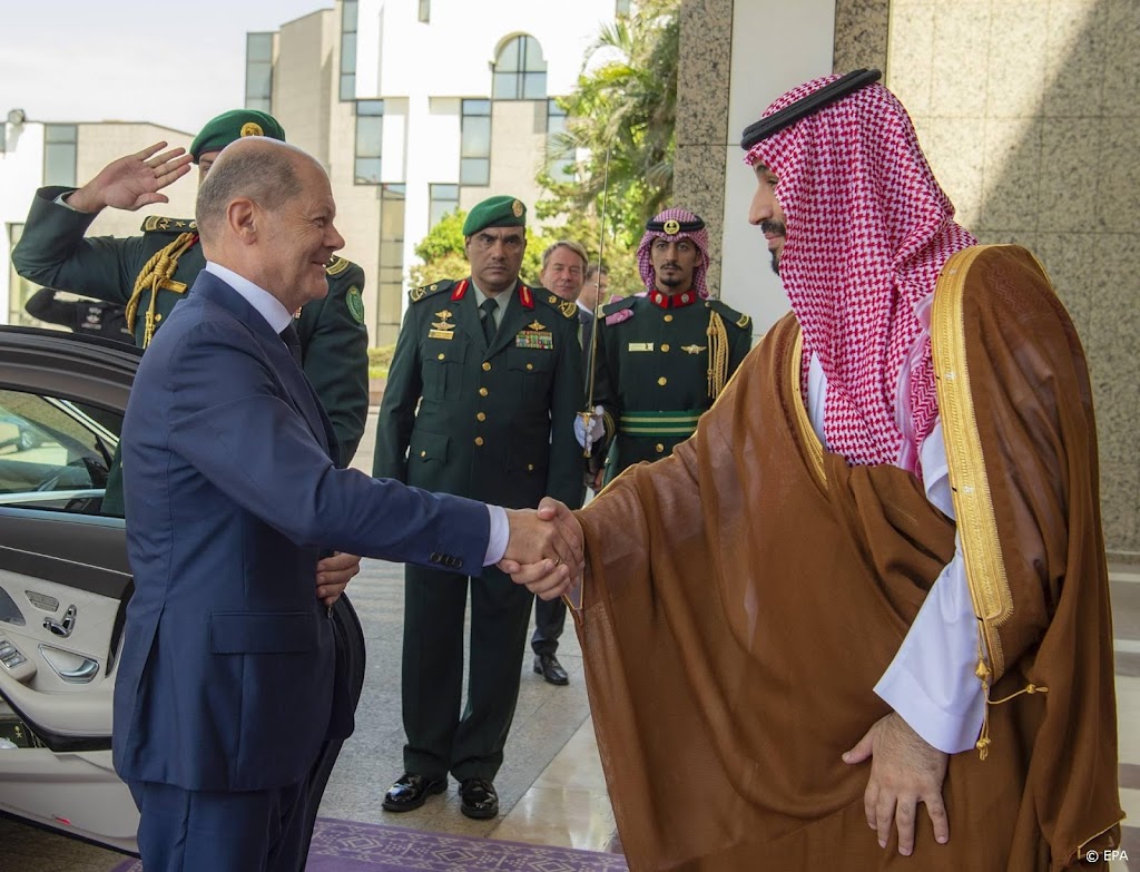 De bondskanselier sprak in de Saudische havenstad Djedda met Bin Salman, de man die verantwoordelijk wordt gehouden voor de moord op Khashoggi in 2018 in het Saudische consulaat in Istanbul. Bin Salman beweert niets met de moord te maken te hebben, maar westerse landen denken dat hij de opdracht heeft gegeven.
