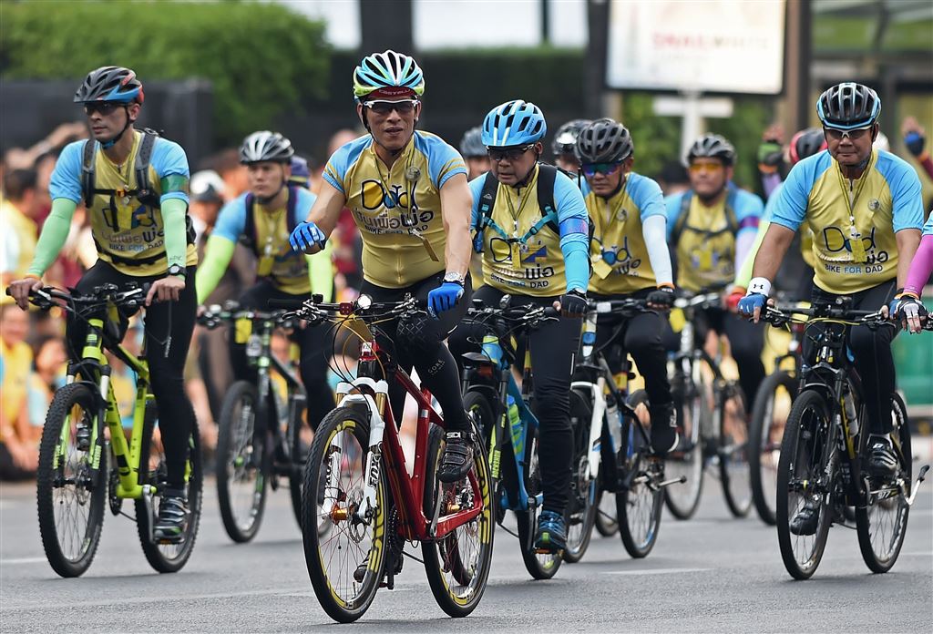 BANGKOK – Thailand is vrijdag op de fiets gestapt ter ere van de 88e verjaardag van koning Bhumibol. Onder aanvoering van kroonprins Vajiralongkorn gingen in de hoofdstad Bangkok bijna 100.000 Thai de straat op voor de ‘Bike for dad’-tocht. Ook een aantal buitenlandse diplomaten nam deel aan het eerbetoon. Vajiralongkorn had in augustus al een soortgelijke tocht georganiseerd voor zijn jarige moeder.