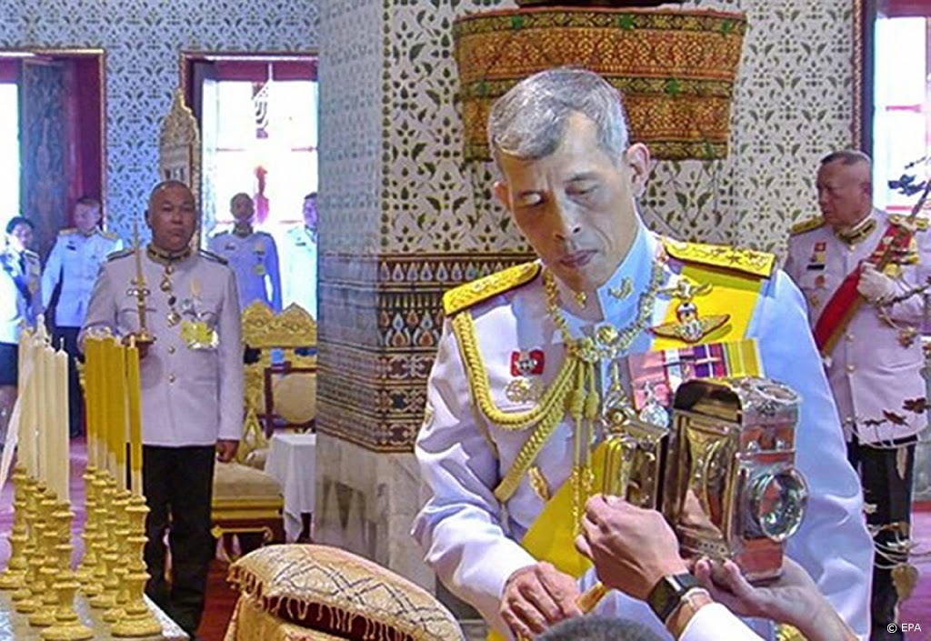 In een religieuze ceremonie doordrenkt met symboliek kroonde de koning zichzelf in de Baisal Daksin-troonzaal van het Grand Palace in Bangkok. Direct daarna bevestigde hij ook zijn vrouw Suthida als koningin. Ze ontving een gouden plaquette met haar volledige naam en titel en de onderscheidingstekens die bij die positie horen. Suthida is afgelopen woensdag met de koning getrouwd.