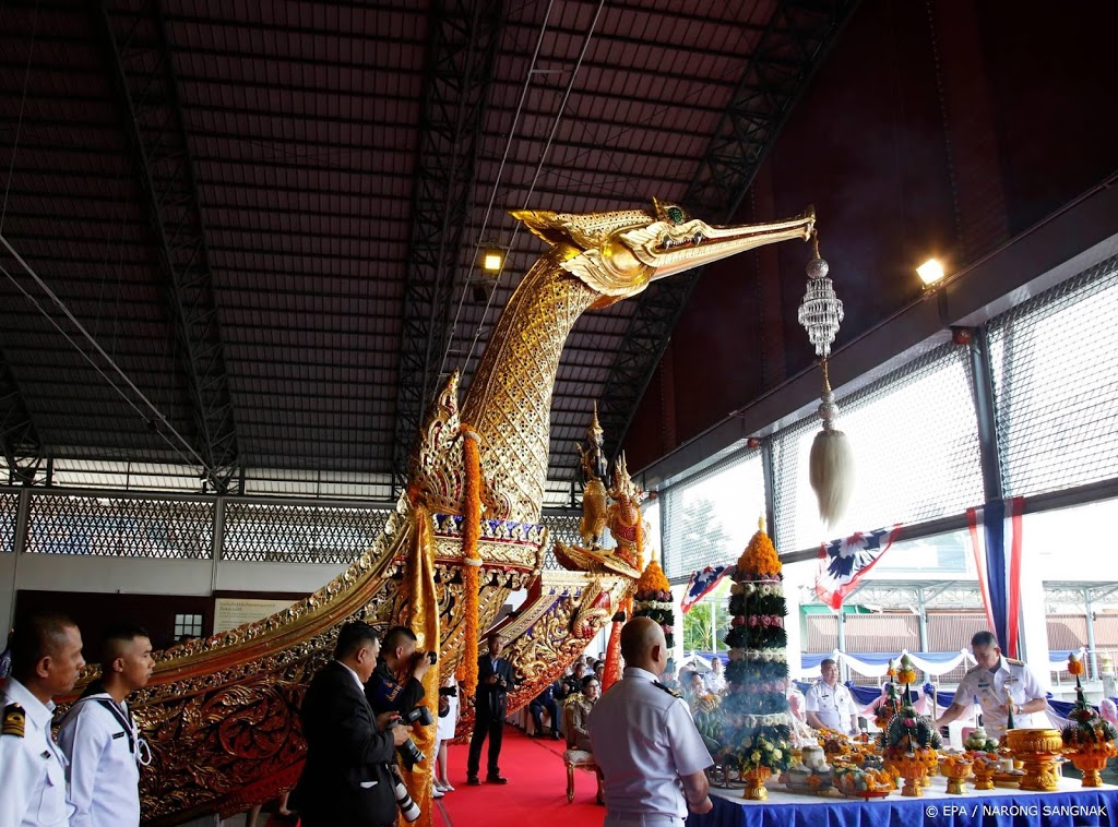 Donderdag vond een boeddhistische ceremonie plaats bij de boten. Monniken besprenkelden de roeiers van de marine die in oktober deelnemen aan de vaartocht. Die vormt het slot van de plechtigheden rondom Vajiralongkorns troonsbestijging. De koning werd begin mei gekroond, ruim 2,5 jaar nadat zijn vader Bhumibol was overleden.