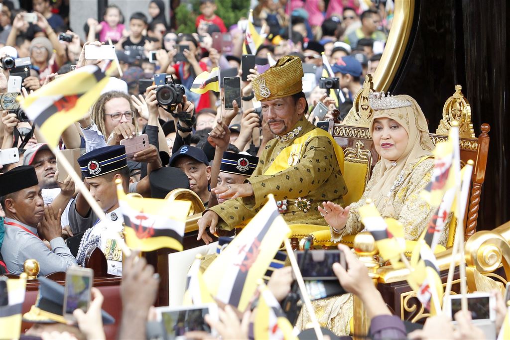 Bij de viering van het jubileum in het paleis was kroonprins Billah tot tranen toe bewogen toen hij zijn vader namens iedereen toesprak. De sultan, die eerder een militaire parade had afgenomen, nam in de troonzaal ook zelf het woord en sprak van een ‘historische dag’ voor hemzelf en voor Brunei. ,,Mijn geschiedenis is ook de geschiedenis van het volk en de natie. Als sultan mag ik de banden met volk en natie nimmer verbreken.”