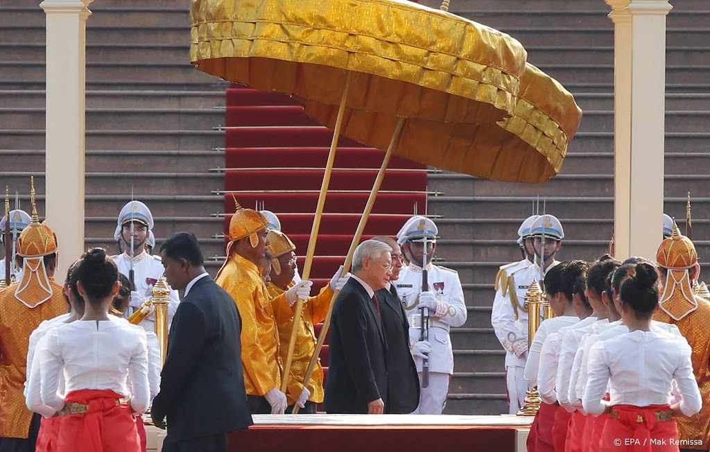 Het is Trongs eerste officiële bezoek aan Cambodja sinds hij in oktober president werd. Koning Norodom Sihamoni ontving hem maandag met een welkomstceremonie bij het Koninklijk Paleis in Phnom Penh. Op dinsdag staat een ontmoeting met premier Hun Sen op het programma. Hun Sen controleert het Zuidoost-Aziatische land al sinds 1979.
