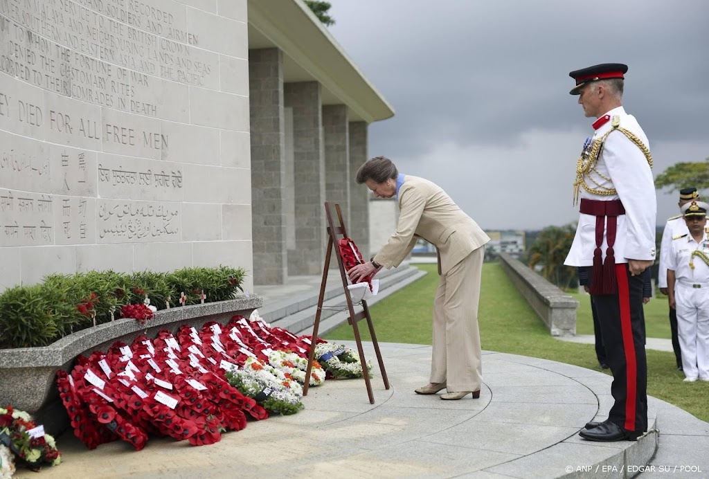De Britse prinses Anne is begonnen aan een tweedaags bezoek aan Singapore. Op de eerste dag stopte ze samen met haar man Timothy Laurence bij oorlogsbegraafplaats Kranji, waar talloze Britse veteranen hun laatste rustplaats vonden.