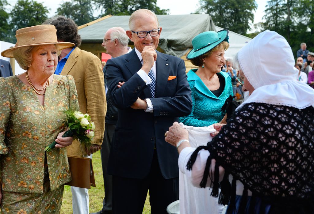 APELDOORN – Prinses Beatrix, prinses Margriet en Pieter van Vollenhoven bekijken zaterdagmiddag voor Paleis Het Loo in Apeldoorn een zogenoemd grand Defilé dat wordt gehouden in het kader van de viering van 200 jaar Koninkrijk. In de stoet rijden tientallen koetsen en oude rijtuigen mee uit alle delen van Nederland die herinneren aan verschillende perioden uit de geschiedenis.
