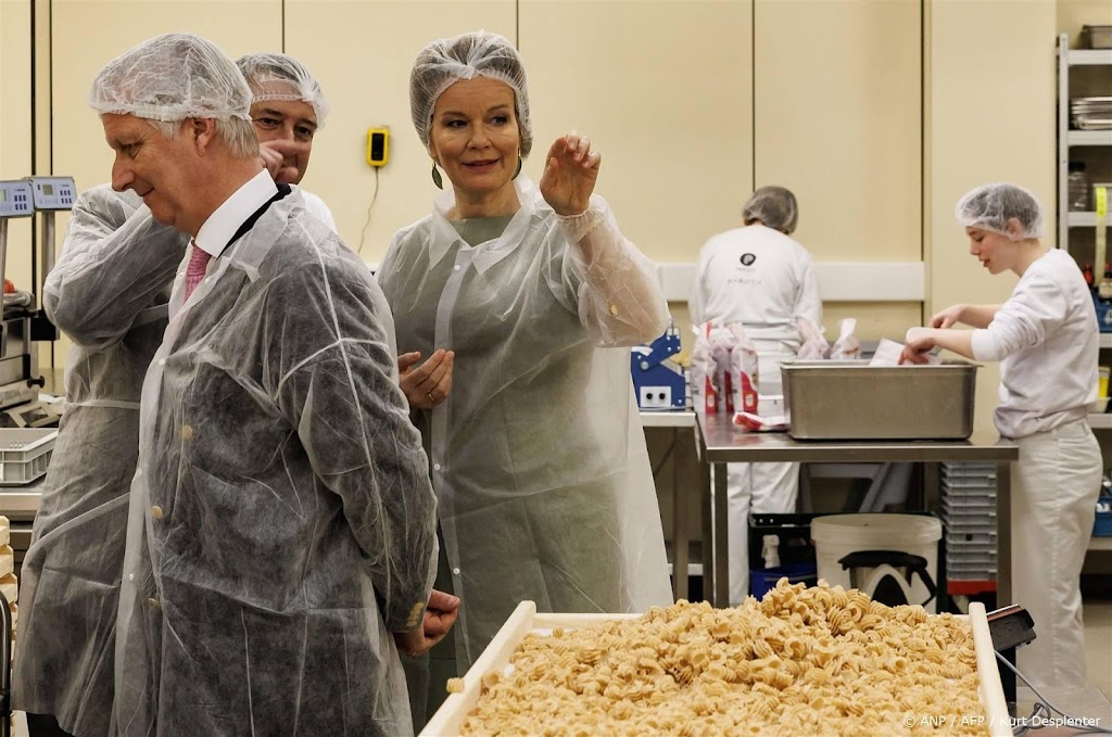 Filip en Mathilde bezochten het bedrijf Aarova, dat textiel produceert, maar ook verse pasta bereidt en cateringdiensten aanbiedt. Op foto’s is te zien dat het koningspaar haarnetjes draagt terwijl ze door de pastafabriek lopen. Bij het bedrijf werken ongeveer vierhonderd mensen.