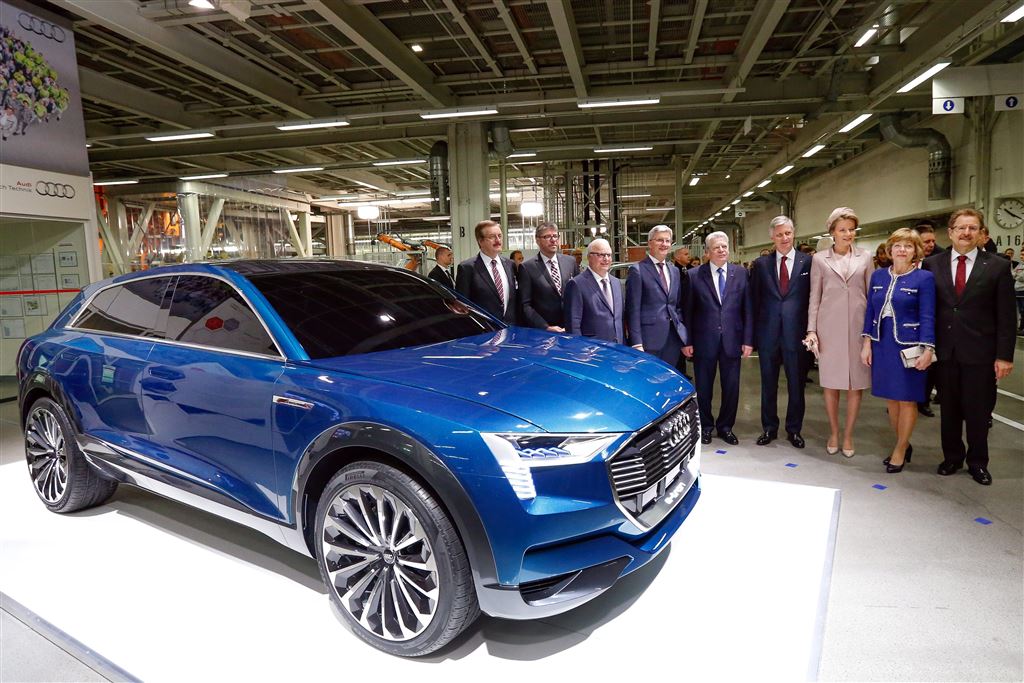 Nadat het koningspaar en de Duitse bondspresident het gastenboek hadden getekend, begaf het gezelschap zich naar de carrosserieafdeling van de fabriek. Tijdens het bezoek was er volgens Belga vooral veel aandacht voor de nieuwe elektrische SUV van Audi. Speciaal voor de komst van Filip, Mathilde en Gauck was een conceptversie van de wagen opgesteld. De elektrische SUV wordt vanaf 2018 in Brussel gebouwd.