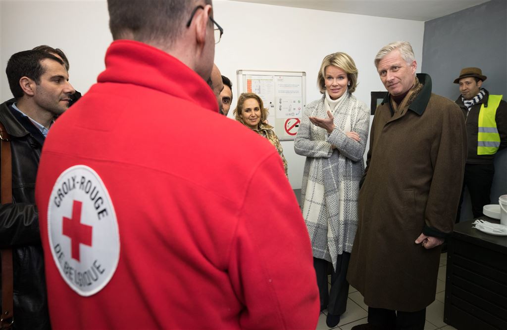 Het koningspaar van België arriveerde woensdagavond vlak voor het opdienen van het avondeten in de nachtopvang. De daklozen kunnen er gratis en anoniem overnachten en krijgen zowel ’s avonds als ’s ochtends een maaltijd. Er is plaats voor 48 personen en de opvang zit elke nacht vol.