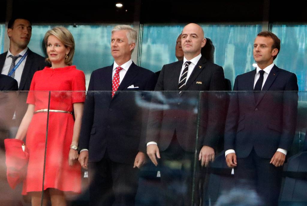 Filip en Mathilde bekeken de wedstrijd in Sint-Petersburg samen met de Franse premier Emmanuel Macron en FIFA-voorzitter Gianni Infantino.