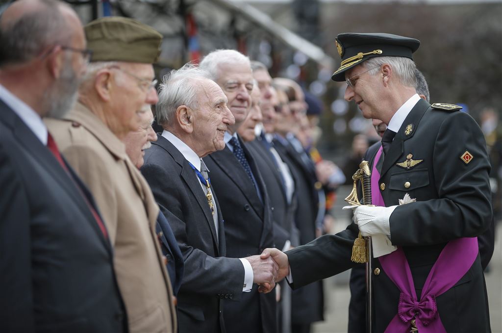 De koning legde een krans bij de Congreskolom, bij het graf van de Onbekende Soldaat, waarna hij een minuut stilte in acht nam. Enkele honderden mensen, onder wie ook verschillende oud-strijders, woonden de ceremonie bij, meldt persbureau Belga. De koning sprak ook nog met een aantal veteranen.