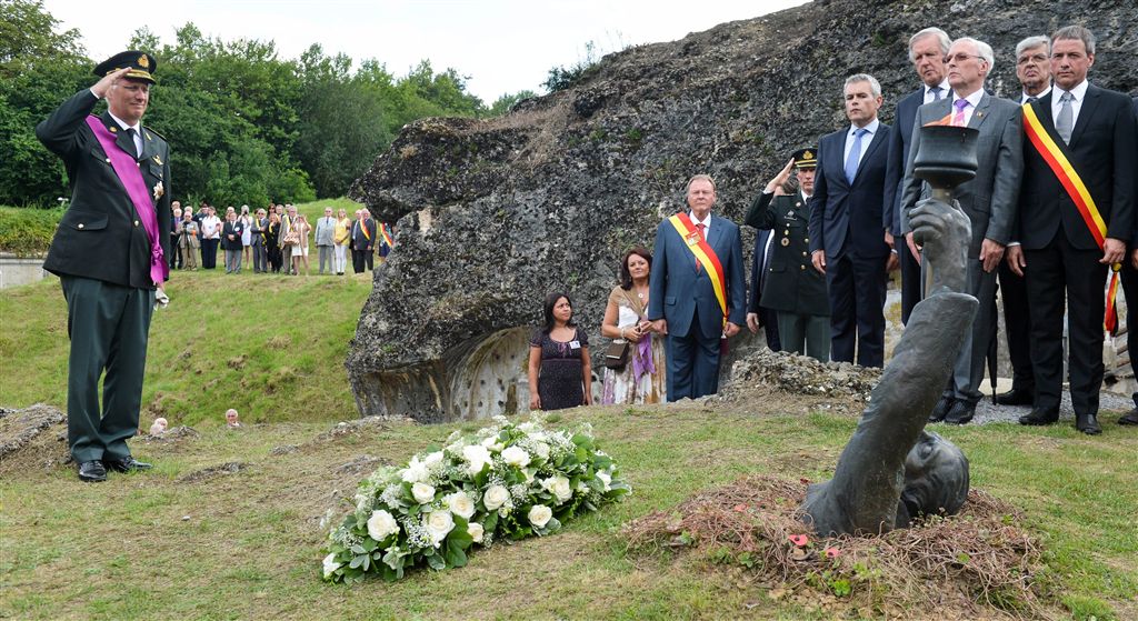 De in uniform geklede koning legde bij het aanwezige monument van het fort een bloemenkrans, waarmee hij een hulde bracht aan de slachtoffers.