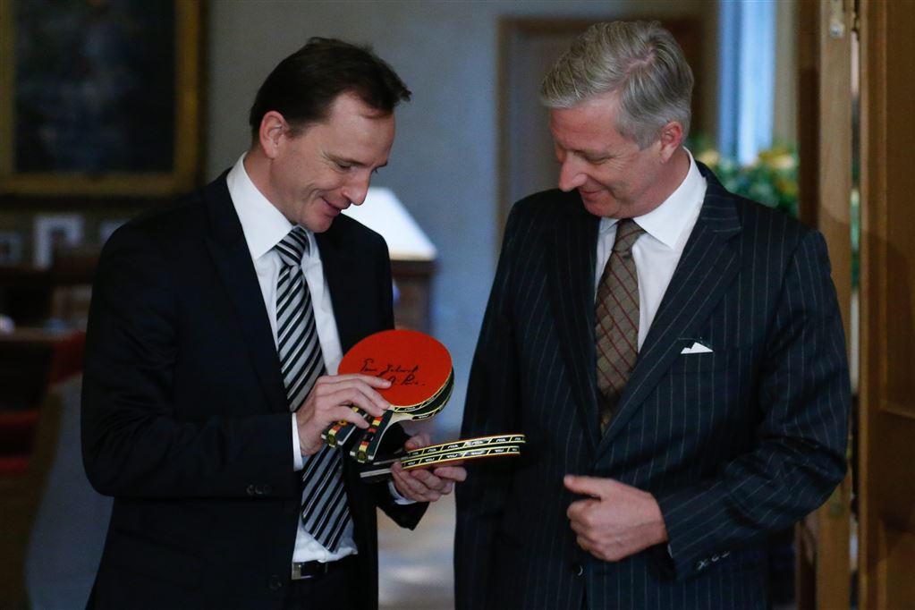 BRUSSEL – Bij koning Filip kan voortaan professioneel tafeltennis worden gespeeld. De Belgische koning kwam dinsdag in elk geval naar huis met vier gesigneerde batjes voor zijn vier kinderen. De batjes waren een geschenk van tafeltennisser Jean-Michel Saive, die door Filip in audiëntie was ontvangen.