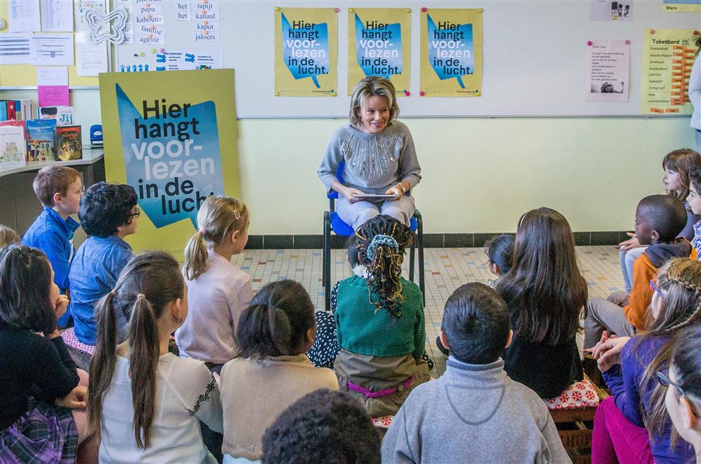 De Belgische koningin Mathilde heeft dinsdagochtend een bezoek gebracht aan basisschool de Kleine Wereld in Asse. Daar las de vrouw van koning Filip een klas voor.