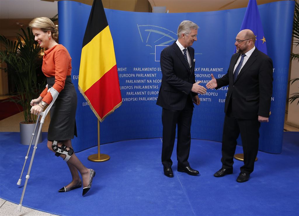 Mathilde loopt sinds haar skivakantie vorige maand in het Zwitsers Verbier op krukken, en gebruikt waar mogelijk voor langere afstanden een rolstoel. Dit omdat ze haar knie heeft geblesseerd. De knie zit netjes ingepakt in een brace met metalen hulpstukken. Vandaar de verwijzing naar robocop.
