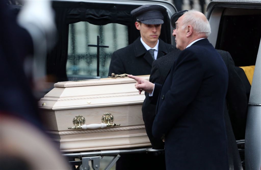 In de kerk vindt het laatste afscheid plaats in aanwezigheid van alleen de naaste familie: de Belgische en Luxemburgse koninklijke families en de Spaanse neven en nichten van koningin Fabiola. De buitenlandse koninklijke gasten bij de uitvaartmis die vrijdagmorgen in de kathedraal werd gehouden, hebben zich ondertussen verzameld voor een ontvangst en lunch in het Koninklijk Paleis in Laken, op korte afstand van de kerk.