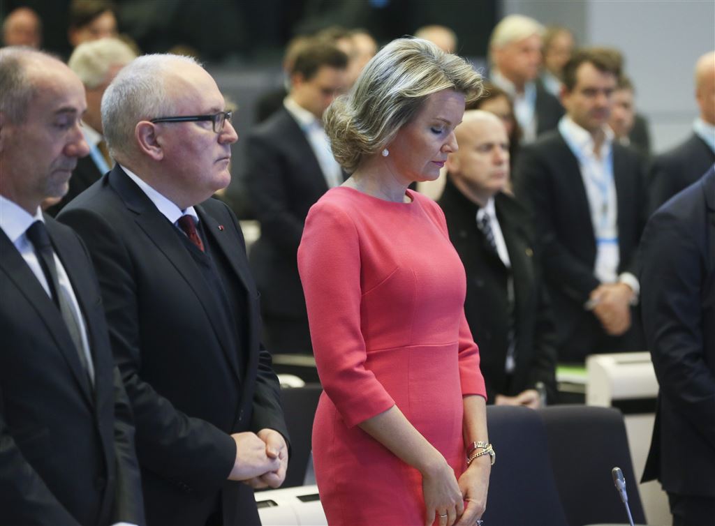 Koningin Mathilde van België heeft dinsdagochtend in het gebouw van de Europese Commissie in Brussel een minuut in stilte in acht genomen naar aanleiding van de aanslag maandag in Berlijn.