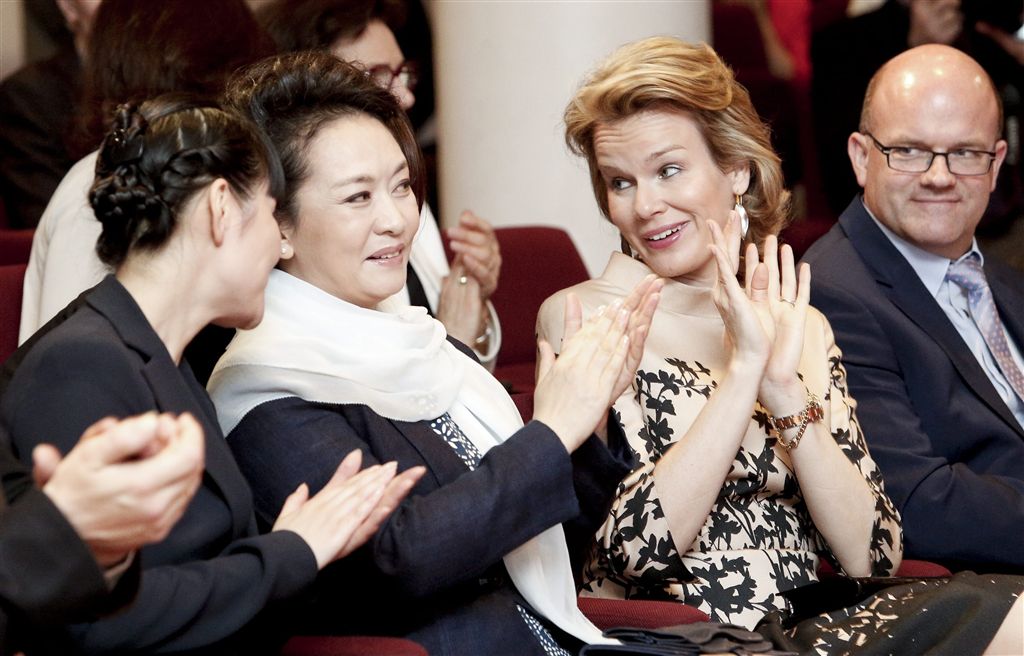 BRUSSEL – Peng Liyuan, de vrouw van de Chinese president Xi Jinping, heeft maandagmorgen samen met koningin Mathilde het muziekinstrumentenmuseum (MIM) in het centrum van Brussel bezocht. Ze werden er onder meer getrakteerd op enkele korte optredens.