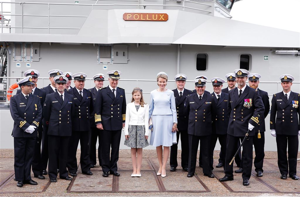 Voor de jonge prinses Elisabeth was het de eerste keer dat ze een schip mocht dopen. Het kapotgooien van een fles champagne op de romp van de Pollux ging niet meteen goed, maar uiteindelijk slaagde Elisabeth toch in haar taak. Haar moeder doopte vorig jaar al het eerste patrouillevaartuig, de P901 Castor.