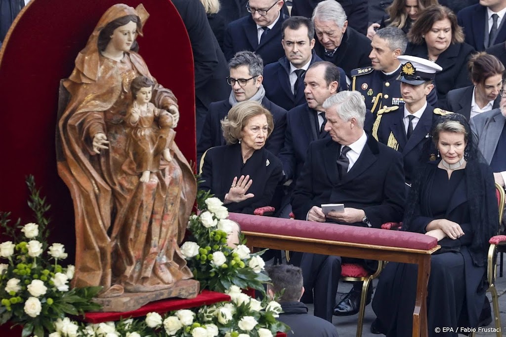 Koningin Sofía van Spanje en de Belgische koning Filip en koningin Mathilde wonen donderdag de uitvaart van de overleden emeritus paus Benedictus XVI bij. Zij zaten naast elkaar tijdens de uitvaartceremonie op het Sint-Pietersplein.